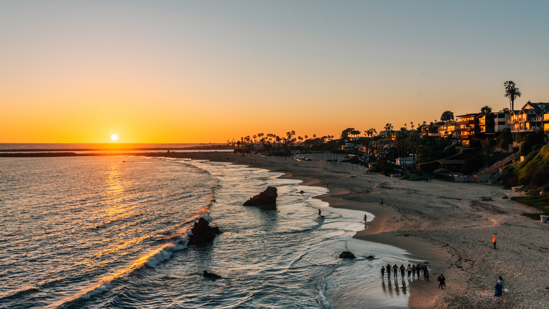 Tucked into the cliffs of Orange County, Little Corona del Mar is one of the region’s most enchanting hidden gems. This intimate beach is framed by dramatic rock formations and tide pools, with a wide-open view of the horizon. In early October, the lower sun angle creates dramatic shadows and soft light. Likewise, this combination makes it perfect for private picnics, quiet reflection, or elegant small gatherings. This is a place to bring a cozy throw, a bottle of wine, and a curated cheese board for a luxurious sundown moment.
